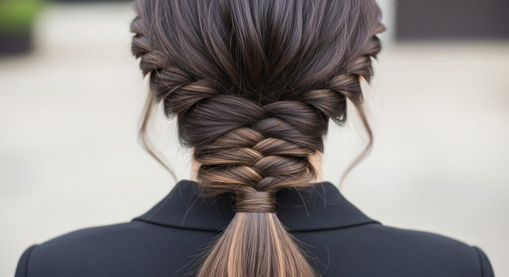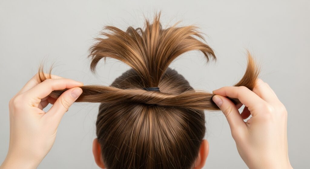 A retro-inspired look that adds volume. Create a low ponytail. Then, right above the elastic, make a small hole or “tunnel.” Flip the ponytail up and through that tunnel, pulling it through. This simple action gives a slight bump of volume at the crown and tucks the ends under for a neat finish.