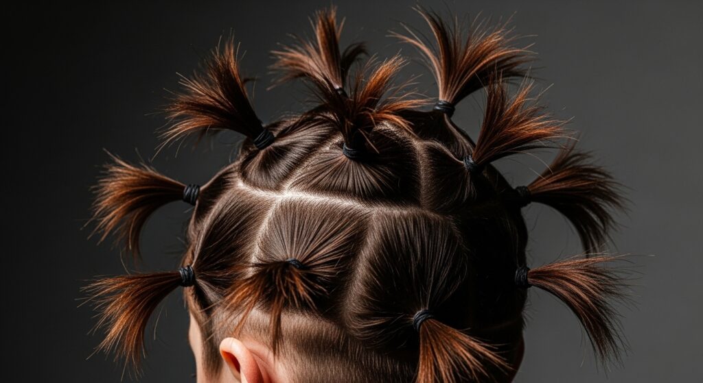 Lean into the punk-rock, edgy potential of your angled cut. Create a series of very small, sectioned ponytails all over your head. You can do this in a line down the back of your head or just cluster a few on the crown. This is a fantastic way to showcase the different lengths of your hair and make a serious style statement.