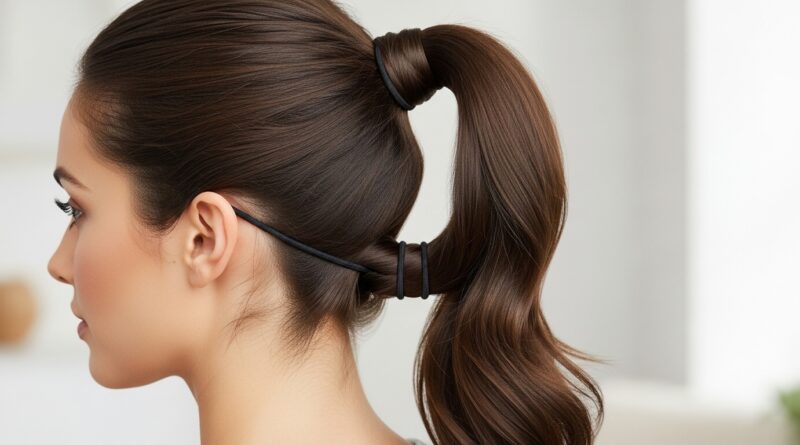 An easy way to add elegance. Create your ponytail. Then, take a small section of hair from the ponytail itself (or use a hair extension) and wrap it around the base to conceal the elastic. Secure the end underneath with a bobby pin. This works for any ponytail height and instantly makes it look more intentional and polished.