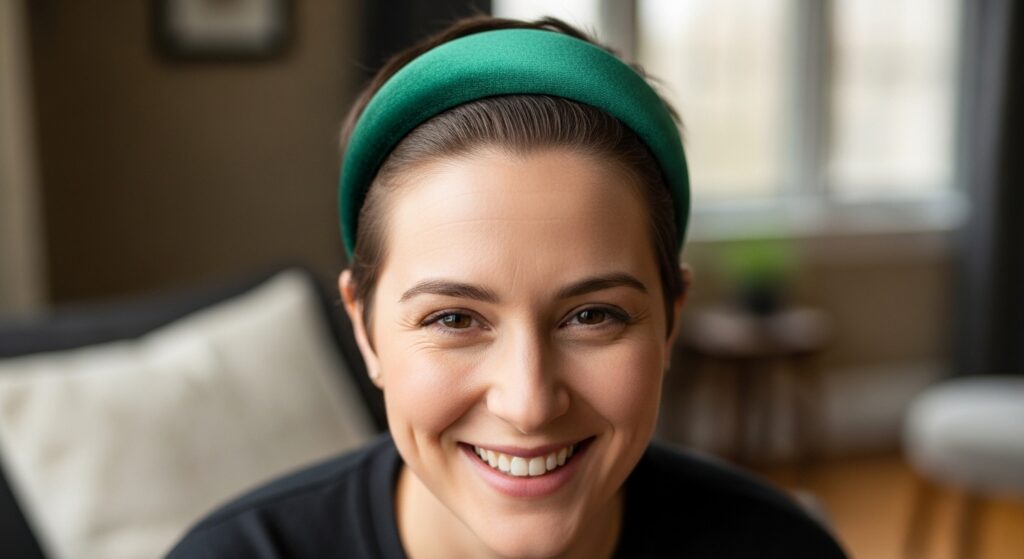 3. Soft Headband or Bandana: A wide, soft fabric headband or a loosely tied bandana can keep hair and flyaways off your face without needing to gather all your hair. Ideal for very short hair or when even a ponytail is too much.