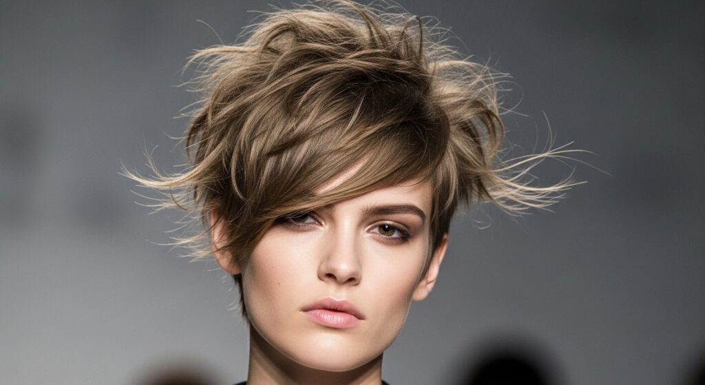 1. The Textured Pixie: Avoid boxy, geometric pixies. Instead, ask for a pixie with lots of choppy texture, longer pieces around the crown for volume, and wispy, side-swept bangs. This keeps the look playful and soft.