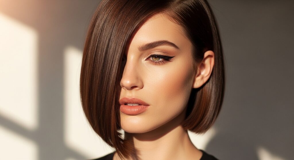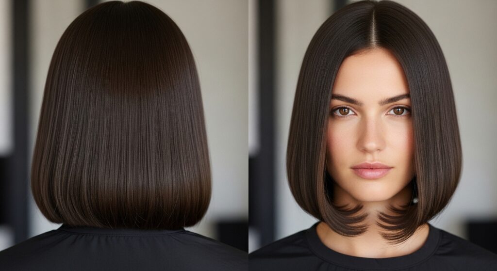 9. The Blunt Cut with Curved Ends: If you love a blunt cut, ensure it ends below the jawbone. Ask your stylist to cut the ends with a slight inward curve (under-cutting) to guide the eye downward.