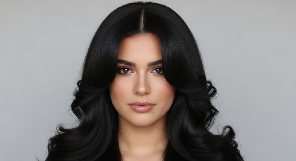 17. The “Root Lift” Blowout: When blow-drying, focus on lifting the roots at the crown for height. Use a round brush to curl the ends under or outward, away from the face, to avoid adding width at the jaw.