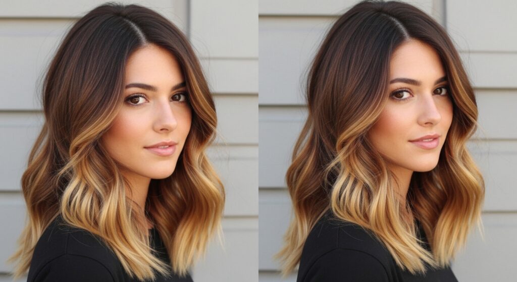 A softer, more gradual version of ombre, sombre features a subtle, whisper-light transition from your natural root color to lighter ends. The contrast is minimal, meaning less lightener is needed overall, and the focus is on the mid-lengths and ends, which are generally more resilient than new growth.