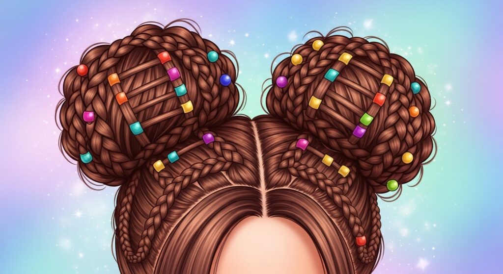 16. Ladder Braid Space Buns: Give a trendy style an intricate twist. Create two high ladder braids that coil into perfect space buns for a fun yet detailed look.