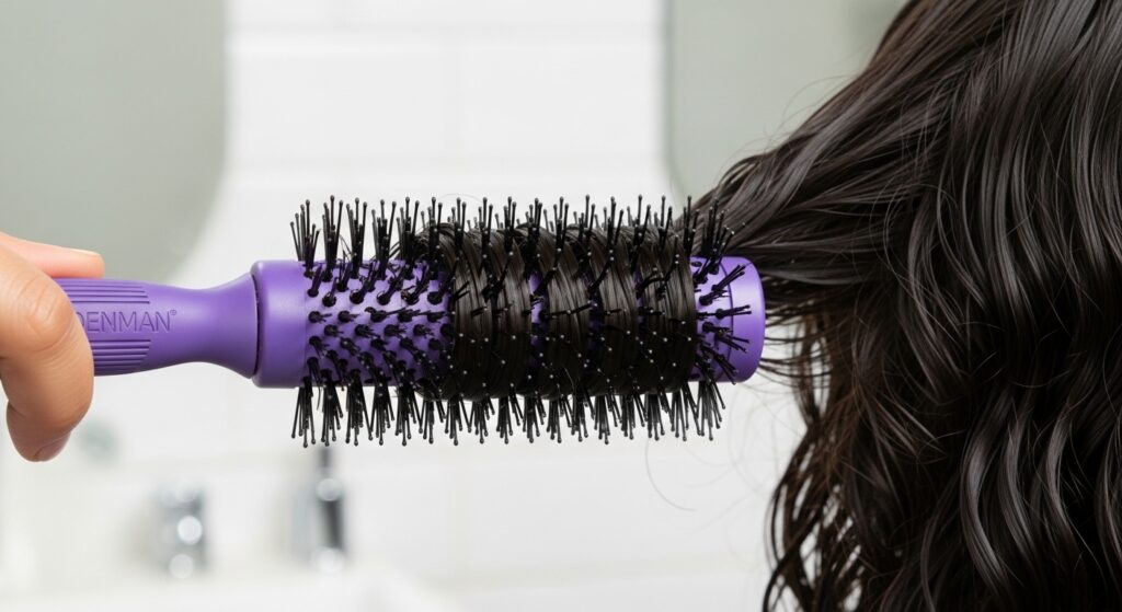 When using a styling brush like the Denman, create smaller, horizontal subsections within your main quadrant. Brush each subsection under tension, away from the scalp, to form uniform curl clumps. This grid-like approach is a game-changer for creating consistent, defined ringlets across your entire head.