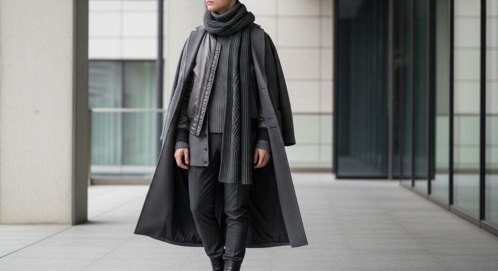 You already love a cohesive palette; now take it a step further. Instead of a single black outfit, try layering different shades and textures of one color. Think a charcoal turtleneck under a heather grey blazer, or a cream silk shell under a camel wool coat. This creates depth, sophistication, and a fashion-forward feel without introducing a new color.