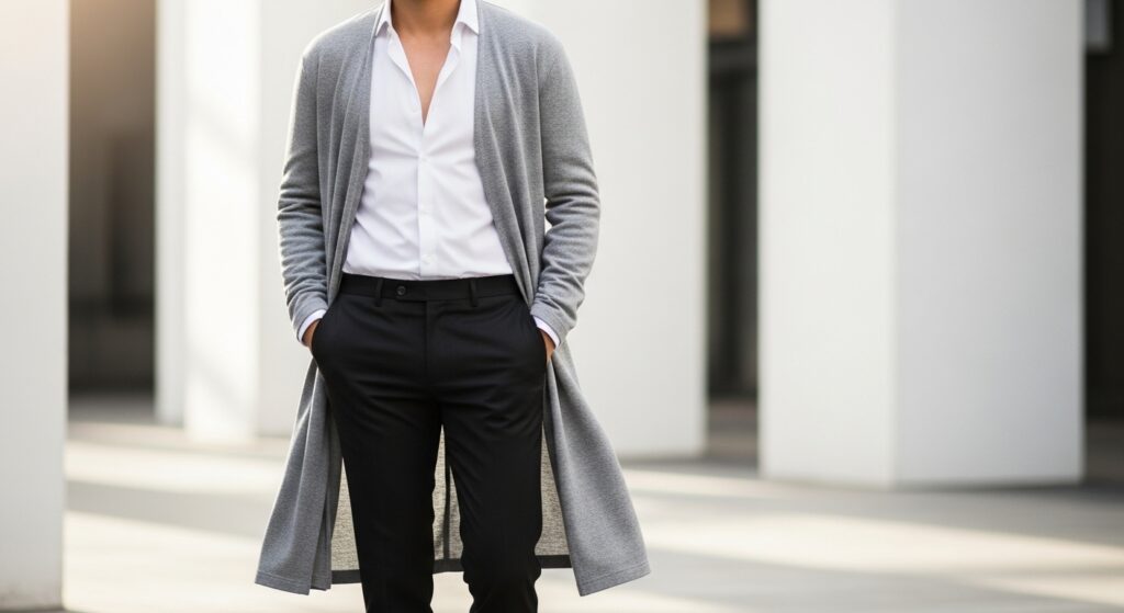 You know the “third piece” rule (top + bottom + blazer/cardigan). Reimagine that third piece. Instead of a classic blazer, try a sleek leather gilet, a finely knit cape, or a long, duster-style cardigan. This unexpected layer adds intrigue and modernity.