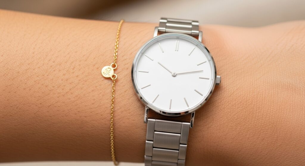 If you’ve been a dedicated silver or gold wearer, try mixing metals. A silver necklace with a gold ring, or a watch with a two-tone bracelet, feels intentional and contemporary. Alternatively, if you wear yellow gold, try moving to a warmer, brushed brass, or if you wear silver, experiment with a cool, polished platinum tone.