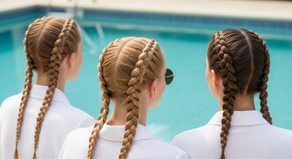 3. Fishtail Braid: A stylish, beachy option that distributes hair evenly, preventing heavy, soaked sections.