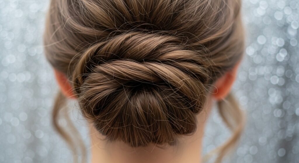 12. French Twist: A classic, elegant updo that neatly folds hair upon itself. Use pins with good grip and a spritz of texturizing spray for hold.
