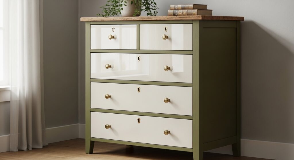 Two-tone isn’t just for walls. Furniture offers a mobile canvas for contrast. Think of cabinets with differently colored bases and doors, a table with a contrasting tabletop and legs, or a sofa with a frame in one finish and cushions in a starkly different fabric. This approach adds layered sophistication and allows for flexible styling.