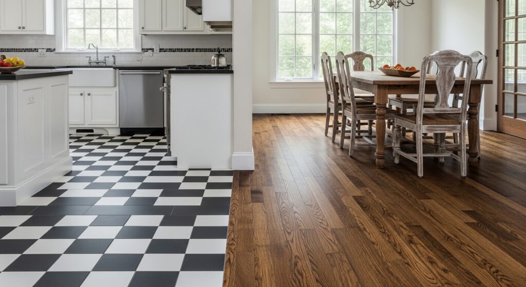 Make a ground-level statement with contrasting floors. This can be achieved with patterned tiles (like checkerboard), using two different stains on hardwood in a parquet or border pattern, or with strategic rug placement. It defines zones in an open-plan space and adds a foundational layer of pattern.