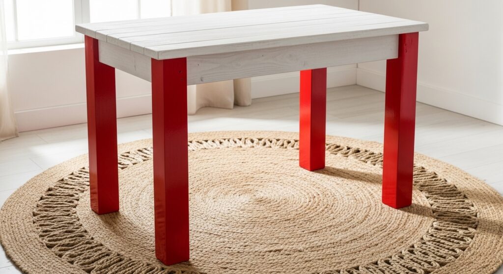 A specific and charming furniture technique: painting the legs of tables, chairs, or benches in a bright, contrasting color to a neutral body. This adds a subtle, playful touch of color that enlivens a space without overwhelming it. It’s an easy DIY update with major impact.
