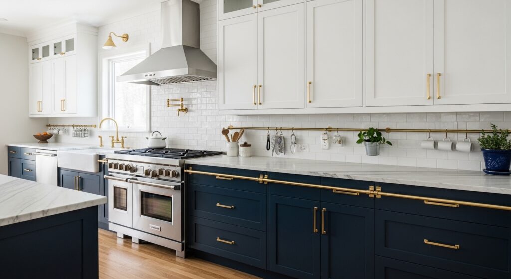 A leading trend in kitchens and bathrooms is using two different colors for upper and lower cabinets. Typically, darker bases ground the space, while lighter uppers keep it feeling open. Alternatively, use a bold color on an island or a pantry cabinet to create a focal point amidst a sea of neutral units.