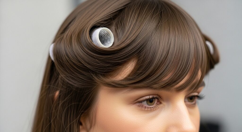 11. The Blunt Bangs Lift: For straight-across bangs, roll them straight back onto a large roller. This adds volume and a slight curve, preventing them from looking too heavy.