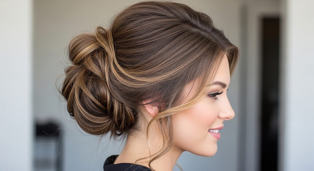 2. The Side-Swept Volume: On the side you typically part your hair, take a diagonal section back from the hairline. Roll it back and slightly upward for instant, face-framing lift.