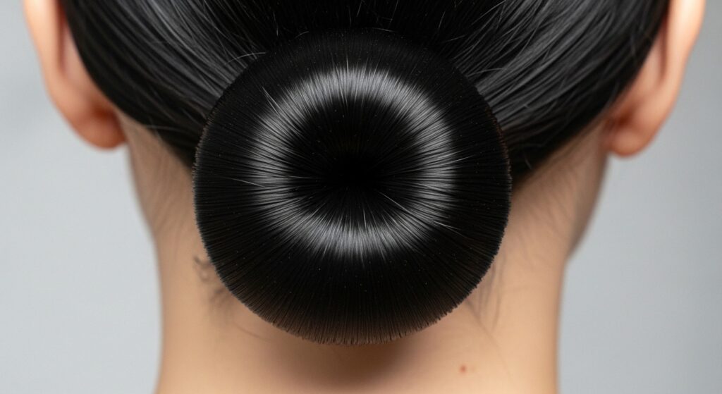 5. The Disc Bun: This is a flat, circular shape pinned flush against the head, often at the nape or crown. Hair is wound tightly and pinned at the perimeter to create a perfect “disc” or “pie plate” effect.