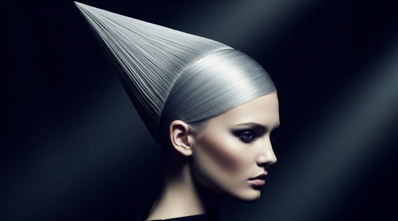 18. The Asymmetric Pyramid: Hair is swept entirely to one side and built into a teased, triangular pyramid shape that angles sharply from the temple toward the back.