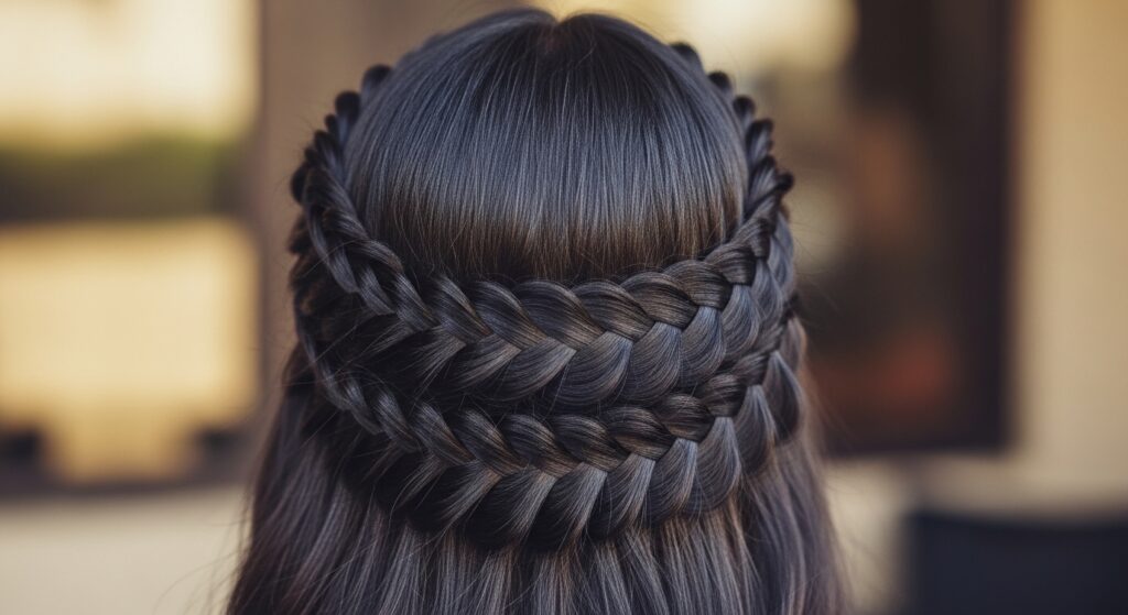 13. The Double-Layer Crown: Create two concentric circles of braids—a smaller, tighter inner crown and a larger, looser outer crown. This multidimensional style is pure artistry and works beautifully on very long, thick hair.