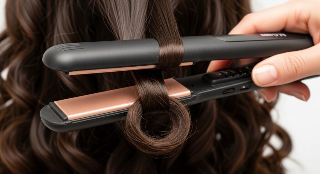 For curly-haired individuals wanting definition without losing their shape, use a technique called “pulsing.” On low heat, take a small curl clump, clamp the iron lightly at the mid-lengths, and gently squeeze and release (pulse) as you move down, following the curl’s natural pattern. This reduces frizz and enhances the curl without making it straight.