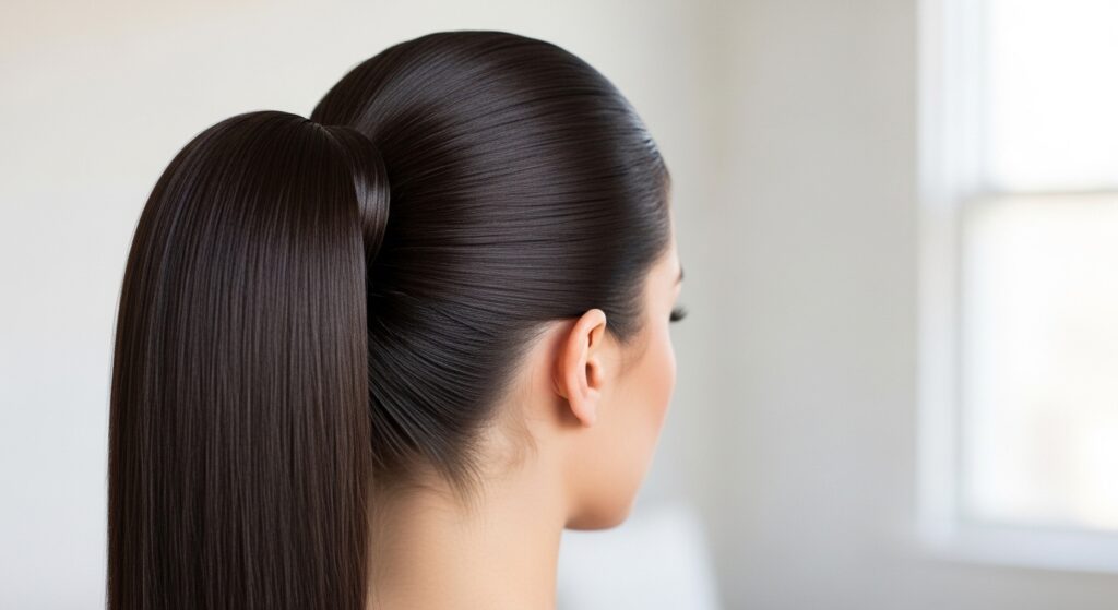 The secret to a red-carpet ponytail is perfectly smoothed hair with hidden volume. Before gathering your hair, use the flat iron to straighten thoroughly. Then, use the root-lift technique at the crown. Finally, for a seamless look, run the iron over the surface hair that will form the ponytail’s outer layer to eliminate any bumps or flyaways.