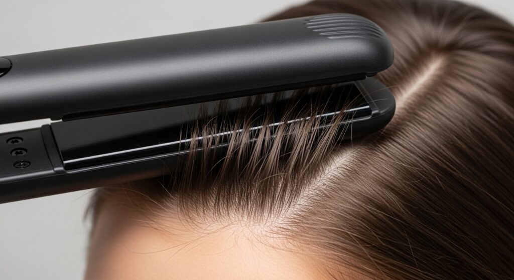Flat irons are secret weapons for root volume. Take a vertical section at the crown. Clamp the iron as close to the root as safely possible, then push the iron upward, lifting the root away from your scalp, and hold for a few seconds before gliding down. This creates an instant lift that lasts, far more effective than many round-brush techniques for fine hair.
