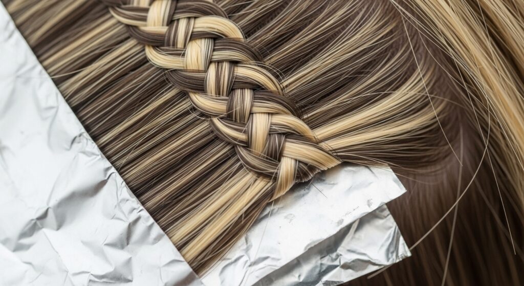 A section of hair is painted, then a clean, untreated piece of hair is laid over it before foiling. This “sandwich” layer protects the underlying highlight from overheating and allows for a more diffused, shadowed effect on the top layer.