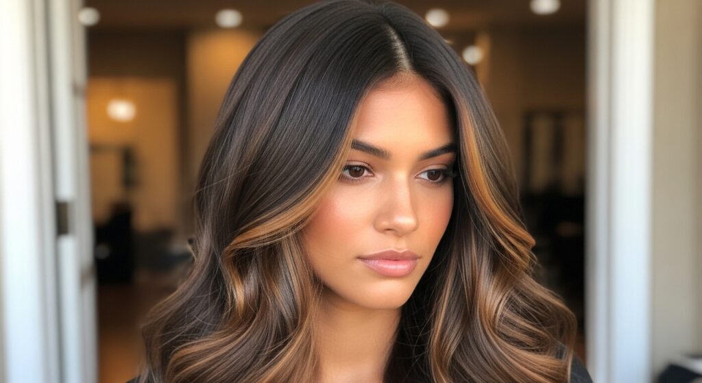 Specifically designed for dark hair, this technique uses a lower-volume developer in the foils to achieve soft, caramel, honey, or chestnut highlights that look sun-inspired rather than artificial. It’s about adding warmth and dimension without going blonde.