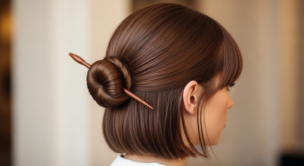 Don’t think hair sticks are only for Rapunzel-length locks! With the right technique, shorter hair can achieve incredibly chic and secure looks.