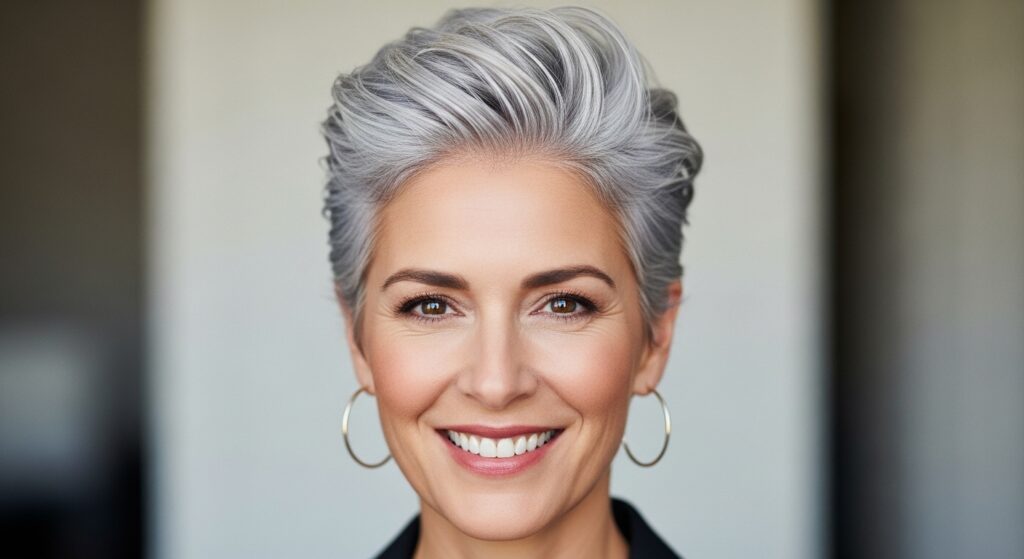 The Pixie Cut: A classic pixie is the ultimate symbol of confidence. As your gray grows in, it creates a beautiful, dimensional salt-and-pepper effect. Ask your stylist for a cut with texture and piecey layers to add movement and softness to your features.