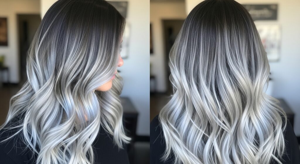 The Smudged Root: This technique involves softly diffusing color at the root area to mimic a shadow. It blurs the harsh line of regrowth and needs far less maintenance than traditional root touch-ups, allowing your gray to emerge gradually.