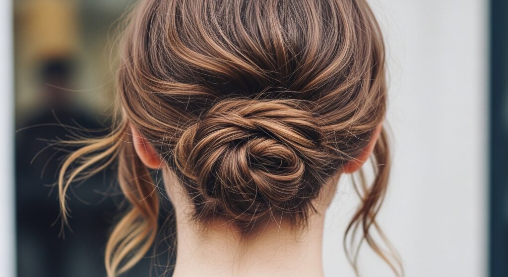 Add instant effortlessness by starting with lightly waved or textured hair. Follow the same process as the classic knot, but don’t worry about perfect smoothness. Let a few face-framing pieces fall loose. The knot itself will have more volume and a softer, more artistic feel, perfect for a weekend brunch or a creative work environment.