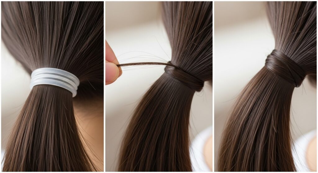 After tying your knot, take a small strand of hair from underneath, wrap it around the base to conceal the elastic, and tuck the end in. This elevates the finish, making the style look professionally done and exceptionally neat.