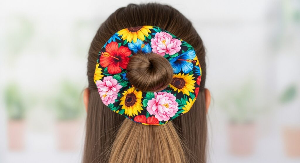 Let your accessories do the talking. Create a simple, low-volume half-up knot and secure it with a bold, patterned scrunchie or a silk scarf wrapped around the base. This draws the eye and transforms the simplest bun into a statement. Choose colors that complement your outfit for a pulled-together look in seconds.