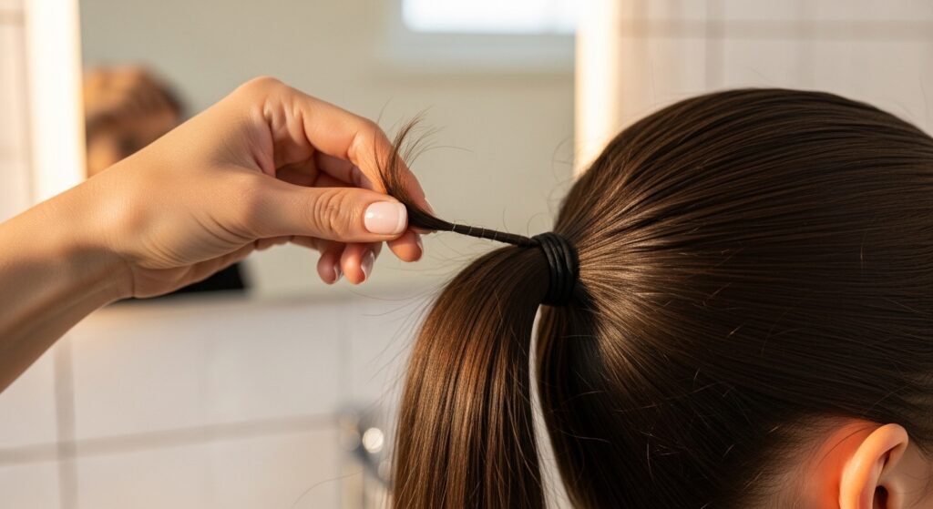 6. Use Two Hair Ties for Security: Always use two identical elastics. The first secures the base; the second, wrapped directly over it, locks everything in place and prevents slipping.