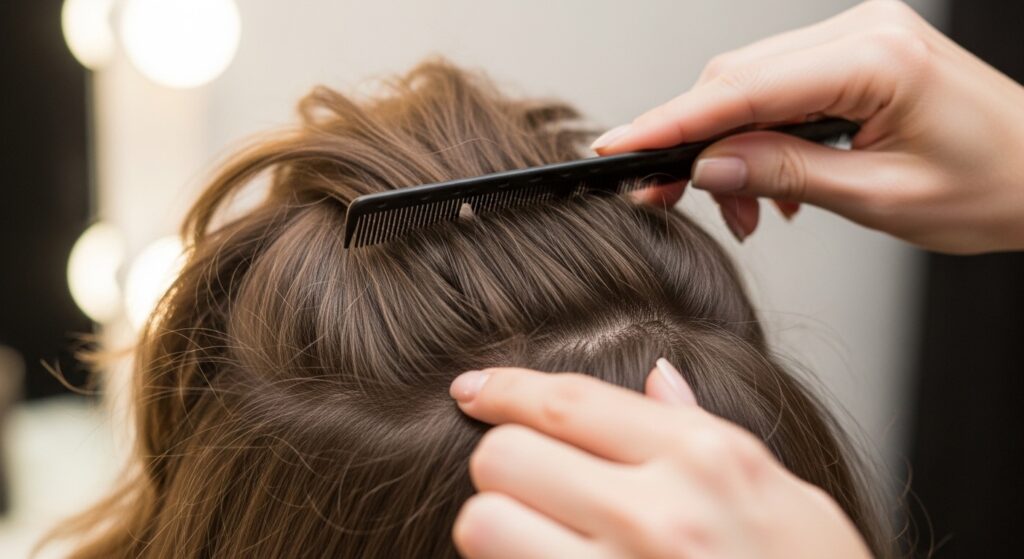 2. Tease at the Crown (The Classic Method): Take a section of hair at the crown. Hold it straight up, and using a fine-tooth comb, gently backcomb from the mid-lengths down to the roots in small strokes. Smooth the top layer over the teased base for hidden volume.
