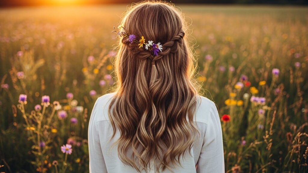 6. The Boho Braid Crown: A delicate braid wrapped around the head like a crown, with the remaining hair left loose and wavy. It’s romantic, feminine, and perfect for festivals, weddings, or adding a special touch to your everyday style.
