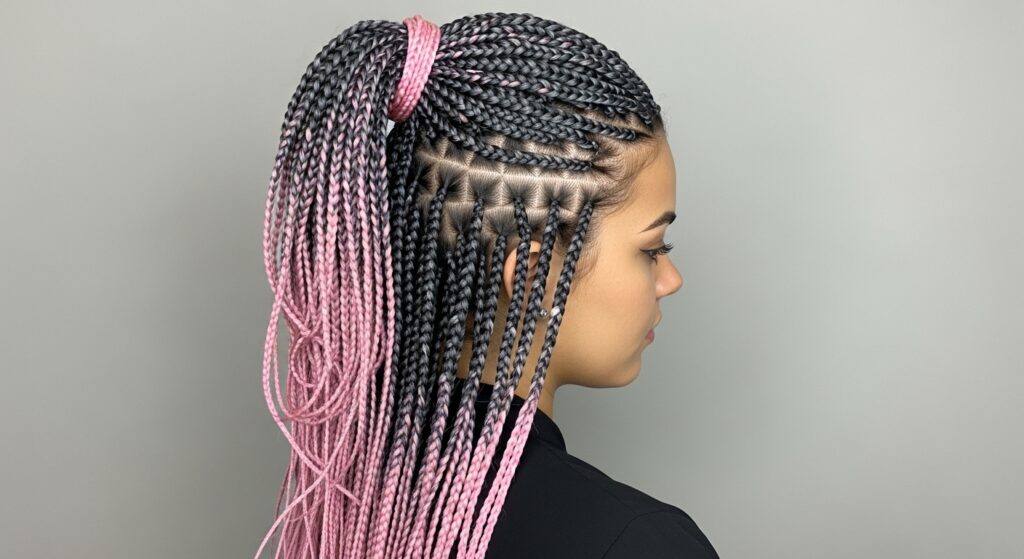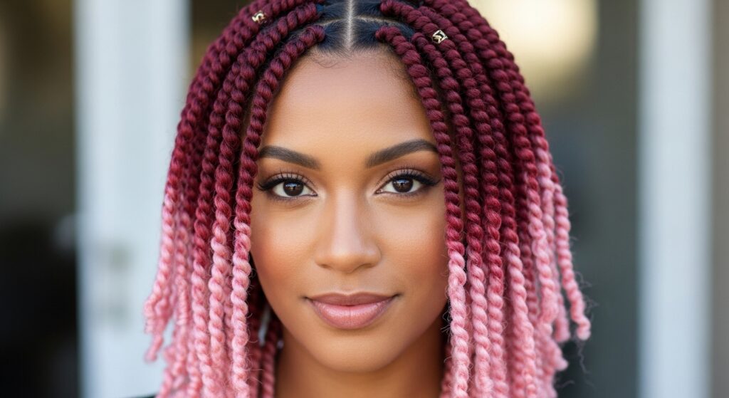 This is a romantic and unexpectedly harmonious blend. The rich, wine-like depth of burgundy elegantly fades into a soft, delicate blush pink. It’s a feminine yet fierce combination that offers a unique twist on traditional colors. Try this with medium-sized braids or even in a stunning braided crown for a special event.
