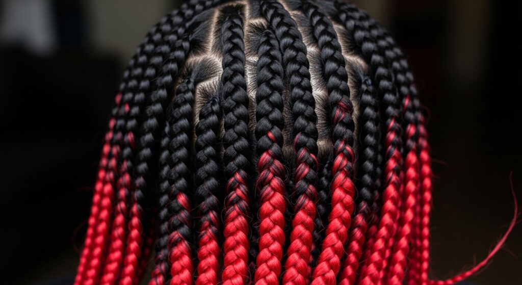 For those who dare to make a statement, the transition from jet black to fiery red is pure drama. The deep, mysterious base makes the vibrant red pop with an intensity that is both powerful and alluring. This combination is fantastic for passionate, bold personalities and looks particularly stunning in thicker, traditional box braids or cornrows.