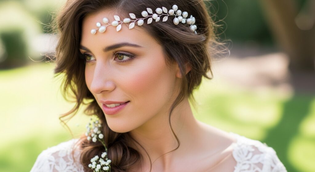 This is a effortlessly chic option. Sweep your hair to one side and create a loose braid. Then, take a flexible pearl hair vine and drape it from the opposite side of your head, following the curve of your part and tucking it behind the start of your braid. It adds instant glamour without any complex braiding.
