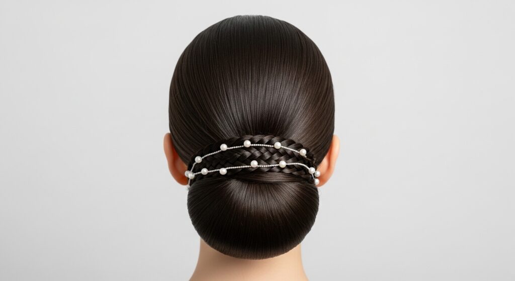 For the ultimate in timeless bridal elegance, a low chignon or bun is a forever favorite. Elevate it by wrapping a thin, pearl-embellished braid around the base. Create a simple three-strand braid, sew or clip tiny pearls onto it, then coil it around your bun. Alternatively, you can leave a section of hair unbraided, thread pearls onto it, and then wrap it. This style exudes Grace Kelly-level sophistication and pairs perfectly with statement earrings and a sleek wedding gown.