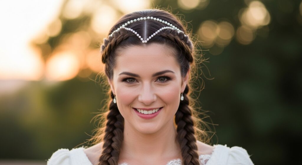 A braided headband is a versatile and universally flattering style. Create a braid from one side of your head to the other, tucking the ends behind your ear. Sew tiny pearls directly onto this braid before securing it. This creates a beautiful, wearable hair accessory that frames the face beautifully and works with both up-dos and down styles. It is an excellent choice for bridesmaids to create a cohesive look with varying hairstyles.