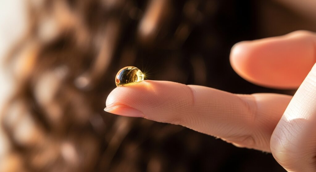 Sometimes, curls just look dull and frizzy. A single drop of lightweight oil (like argan or jojoba) rubbed between your palms can work wonders. Lightly glaze your hands over the surface of your hair, focusing on the ends and frizz halo. This seals in any existing moisture, adds shine, and tames flyaways without adding weight.