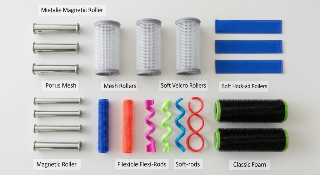 Not all rollers are created equal. Your choice dramatically affects your final look. Magnetic rollers are the classic professional choice, offering intense smoothness and tension for a sleek finish. Mesh rollers are fantastic for faster drying and a firm set. Velcro rollers are easy to use and great for adding volume without pins, but can tangle fine hair. Flexi-rods create beautiful, bouncy curls and waves rather than straight styles. Foam rollers are the gentlest option, perfect for overnight sets and creating loose waves. Having a variety in your arsenal allows you to customize your set.