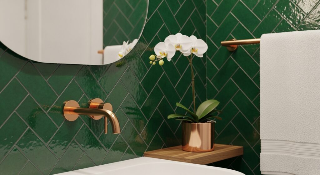 5. Rose Gold + Emerald Green: A regal, jewel-box combination. The richness of emerald green makes the rose gold pop in a way that feels luxe and dramatic. Try emerald velvet cushions with a rose gold vase.