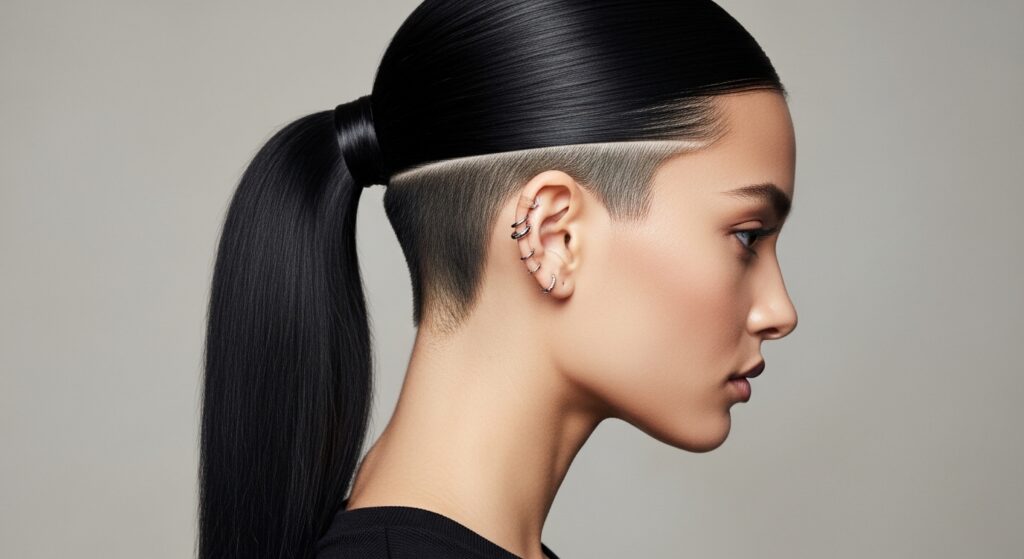 The Classic High Ponytail with Subtle Side Shave