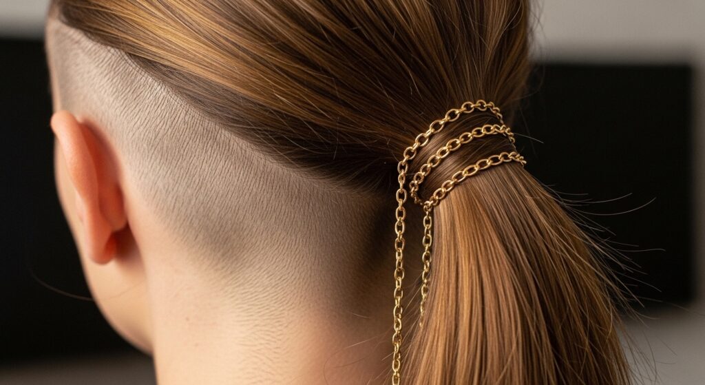 Don’t forget the power of accessories. A shaved-side ponytail is the perfect foundation for bold hair jewelry. Think about wrapping a chain around the base of the ponytail, using ornate cuffs, or weaving ribbons through the hair. The simplicity of the shaved area makes any accessory pop even more. You can change your entire look simply by switching out your hair jewelry, making this a dynamic and customizable style.