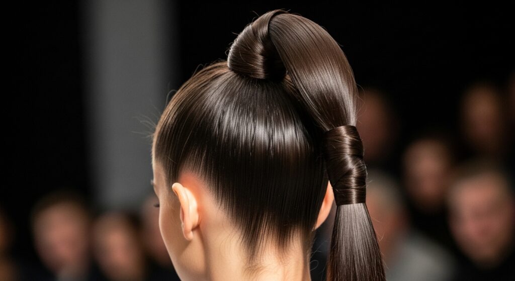 The ponytail reimagined as a high-art, sleek statement.