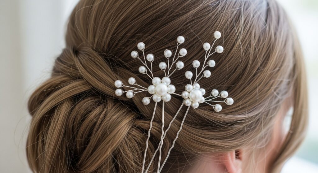 Move beyond the basic bobby pin. Pearl-ended pins scattered through the bun feel incredibly elegant. A statement clip or pin holding a section of the updo can serve as a beautiful focal point. Or, try criss-crossing decorative pins in an “X” formation for a minimalist yet impactful detail.